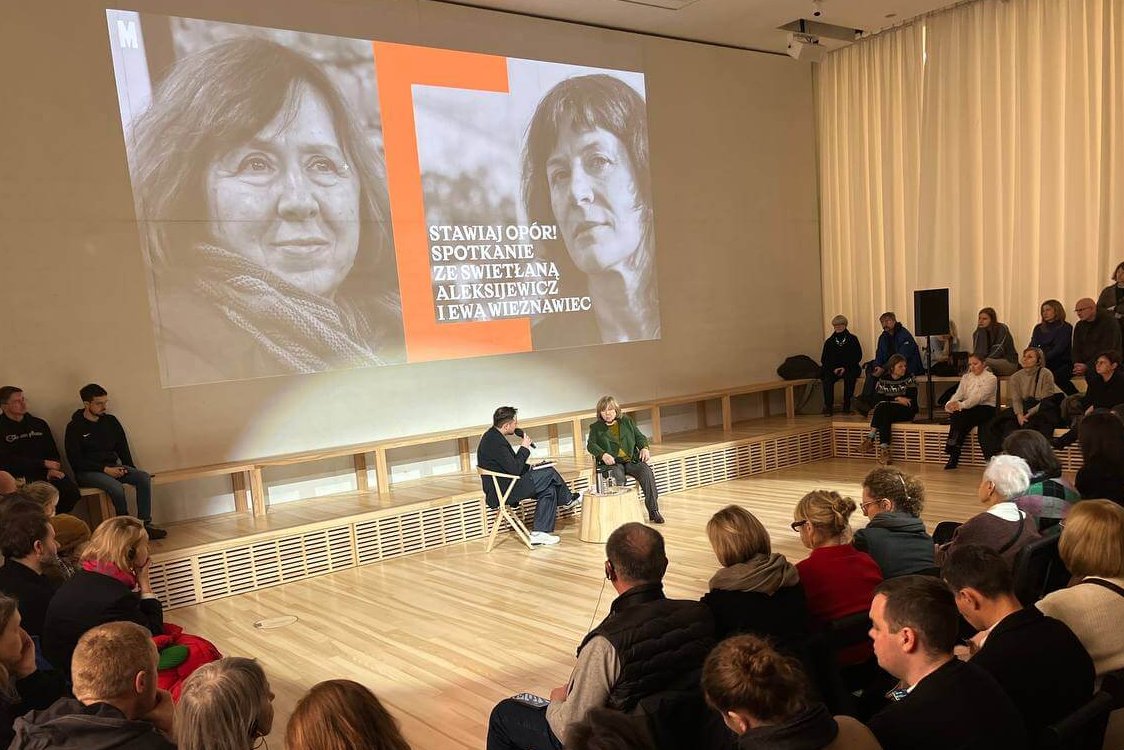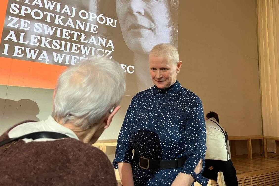 У мінулы ўік-энд у Варшаве высілкамі Беларускага ПЭНа сустрэчы з чытачамі у адной залі, пад агульнай шыльдай, але ў розны час зладзілі дзве вядомыя Святланы — Алексіевіч і Курс (другая карыстаецца псеўданімам Ева Вежнавец).