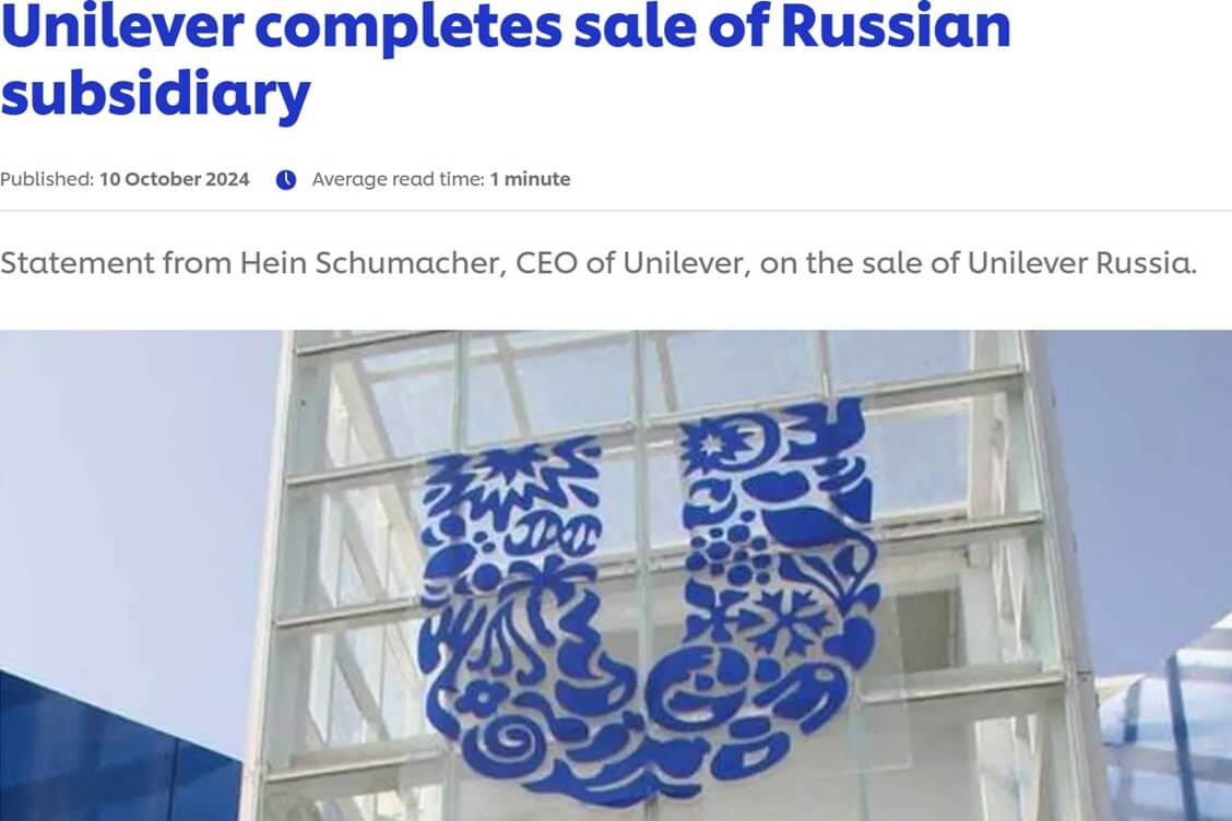 Unilever стаў не першай вядомай міжнароднай кампаніяй, якая пакінула Расію і Беларусь пасля пачатку расійскай ваеннай агрэсіі ва Украіне, якую падтрымалі афіцыйныя беларускія ўлады. У верасьні 2023 году прадала бізнэс у згаданых краінах табачная карпарацыя British-American Tobacco (BAT).