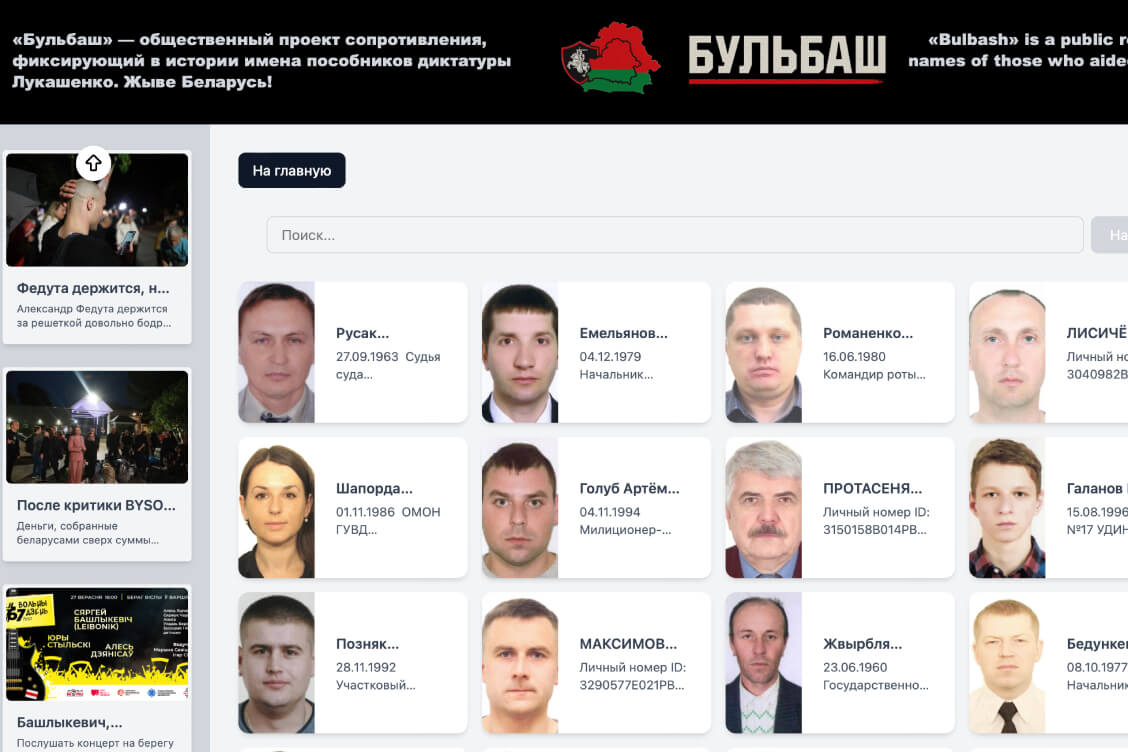 На згаданым сайце пазначана, што гэта “грамадскі праект супраціву, які фіксуе ў гісторыі імёны памагатых дыктатуры Лукашэнкі”. На ім апублікаваныя фатаграфіі і асабістыя звесткі суддзяў, сілавікоў, прадстаўнікоў бюджэтных арганізацый ды інш.