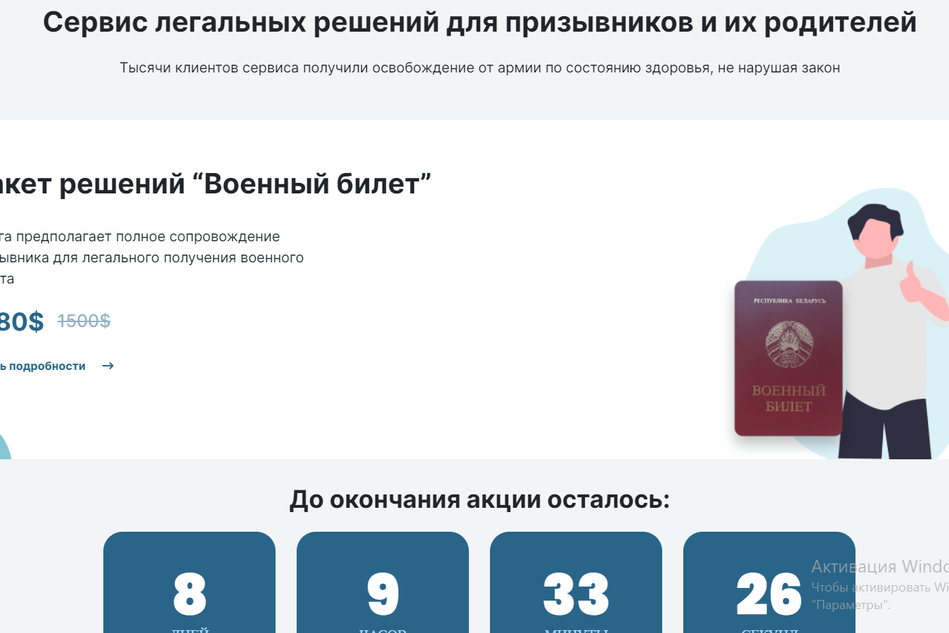 Сайт па-ранейшаму адкрываецца з-за мяжы, на яго галоўнай старонцы паведамляецца, што ініцыятыва прапануе “легальныя рашэнні для прызыўнікоў і іх бацькоў”. “Тысячы кліентаў сервісу атрымалі вызваленне ад войска па стане здароўя, не парушаючы закон”, — гаворыцца на партале.