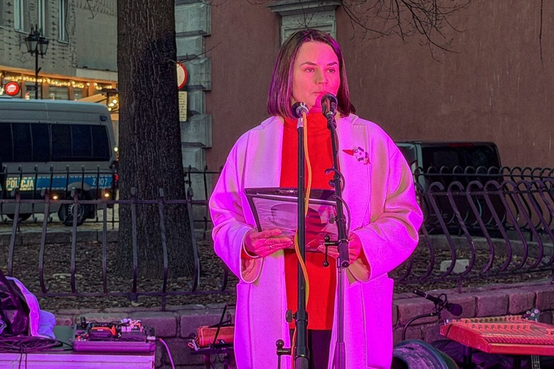 March 29, Pozirk. Belarusian opposition leader Śviatłana Cichanoŭskaja called for full amnesty for all designated political prisoners in Belarus in her address to the Freedom Day rally participants yesterday in Warsaw.