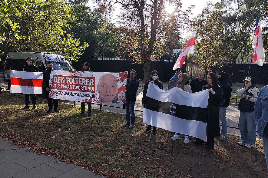 На пикете у посольства Германии в Варшаве требовали привлечь к ответственности живущего в ФРГ экс-тюремщика из Беларуси