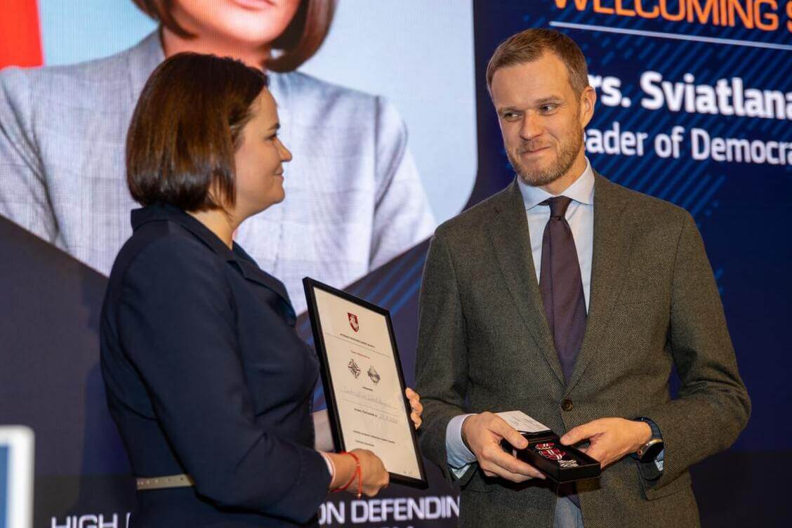 “Победив на президентских выборах в Беларуси в 2020 году, она была вынуждена бежать в Литву, которая предоставила убежище ей и ее детям. Ее муж был заключен в тюрьму в Беларуси за то, что представлял угрозу диктатору Лукашенко. Светлана неустанно боролась за достоинство белорусского народа, убеждая западных лидеров санкционировать коррумпированный режим и предлагая реальную альтернативу — будущий политический выбор для белорусского народа“, — написал Ландсбергис.