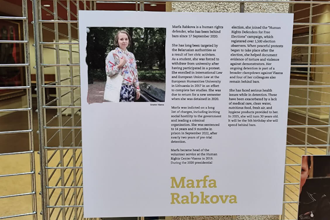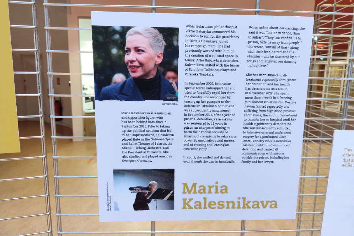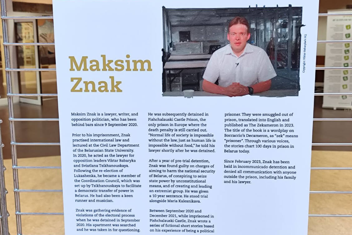 В экспозиции, которая является частью одноименного проекта, представлены отрывки из писем белорусских политзаключенных — журналиста и медиаменеджера Андрея Александрова, главы избирательного штаба Виктора Бабарико на президентских выборах 2020 года Марии Колесниковой, адвоката Максима Знака и правозащитницы Марфы Рабковой.