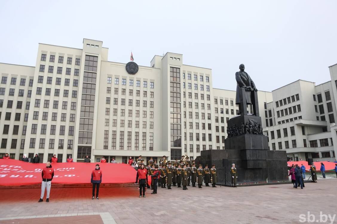 В материале о возложении цветов к памятнику Ленина на пл. Независимости в Минске с участием за авторством пропагандиста Максима Осипова говорится, что “Беларусь является единственной на постсоветском пространстве (вместе с Приднестровьем), где день 7 ноября отмечается на государственном уровне“.
