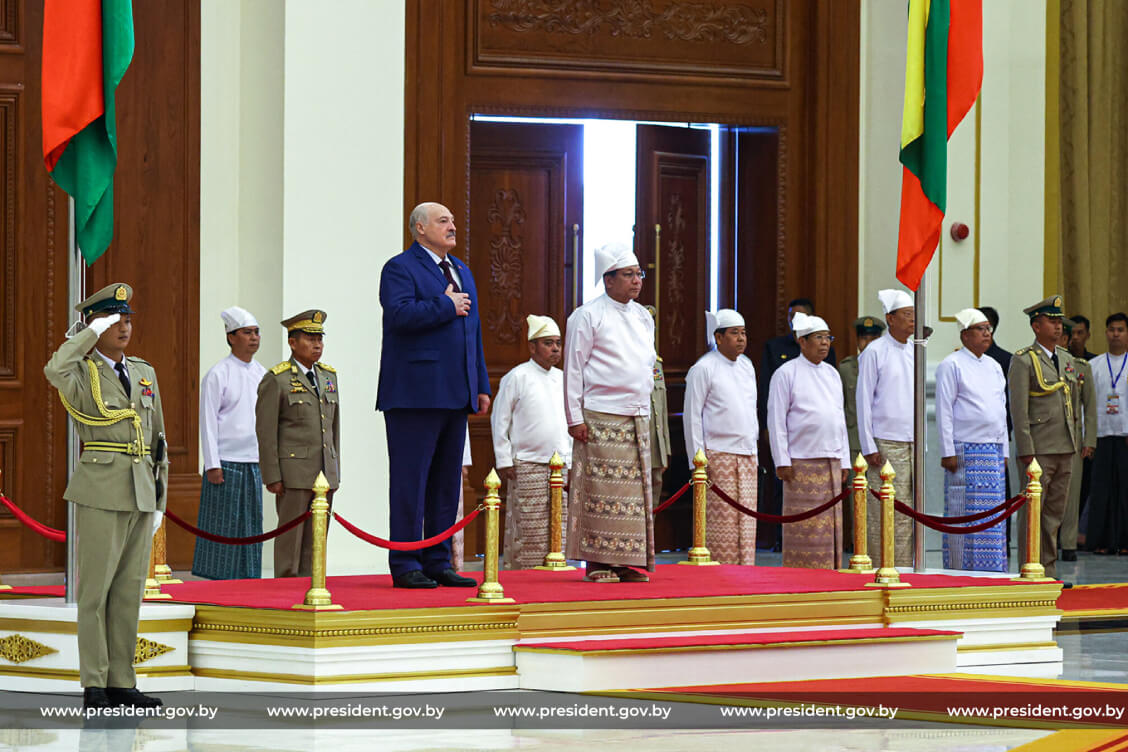 14 июля Лукашенко подписал закон о ратификации соглашения между Беларусью и Мьянмой о взаимной защите секретной информации. 7 марта в Минске на переговорах с Мин Аун Хлайном (тогда политика представляли как председателя Государственного административного совета, премьер-министра Мьянмы) он приветствовал решение страны повысить уровень дипломатического представительства в Беларуси.