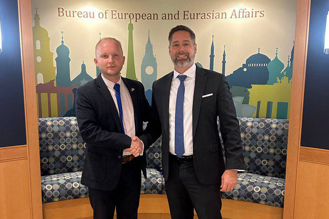 4 декабря, Позірк. Встреча заместителя помощника госсекретаря Соединенных Штатов Америки Кристофера Смита и советника Светланы Тихановской по вопросам дипломатии Дениса Кучинского прошла во время визита последнего в США, сообщил 4 декабря телеграм-канал белорусского демократического лидера.
