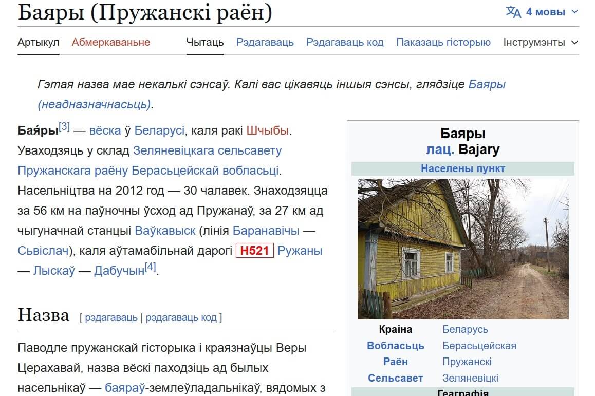 Скриншот страницы в "Википедии": "Позірк"