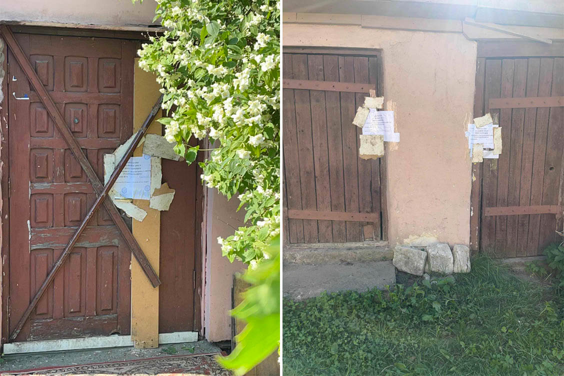 На своей странице в “Фейсбуке“ мужчина опубликовал фото заколоченной двери дома, на которой наклеено ограничительное уведомление с надписью “Опечатано. Наложен арест. Вход воспрещен“.