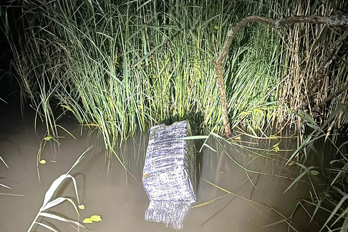 После осмотра территории “к осмотру осмотру привлекли кинолога со служебной собакой“. В болоте неподалеку, “был найден черный сверток“. В нем оказалось еще 500 аналогичных пачек сигарет.